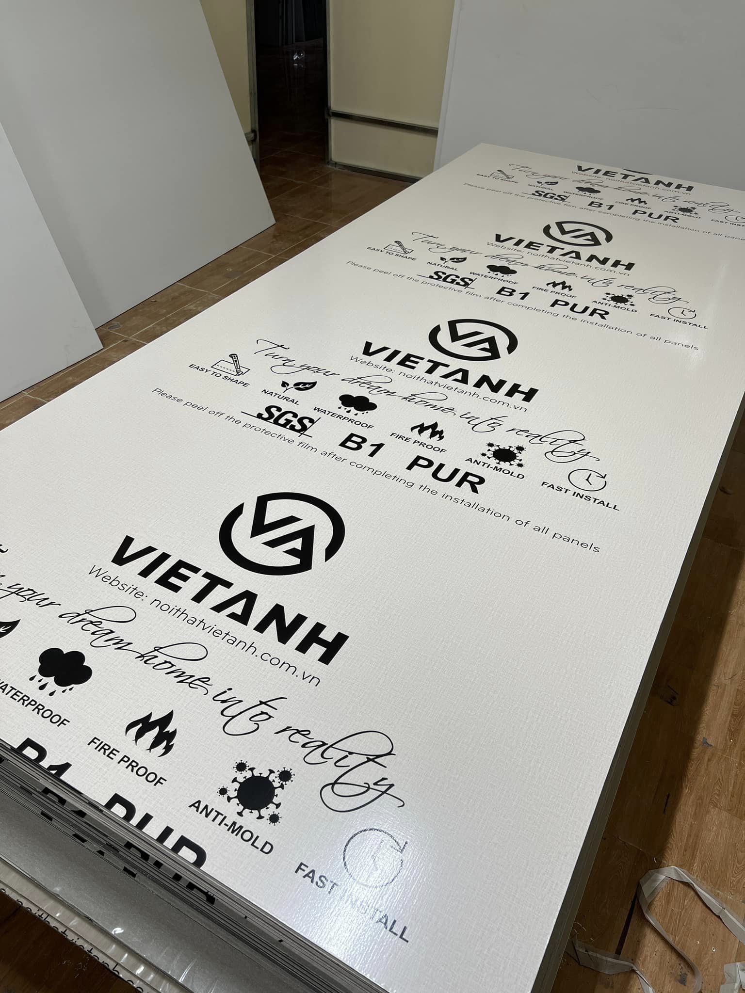| Chất liệu | Bột than tre, lớp PVC trang trí, Keo PUR nhập khẩu Châu Âu; màng Film cao cấp |